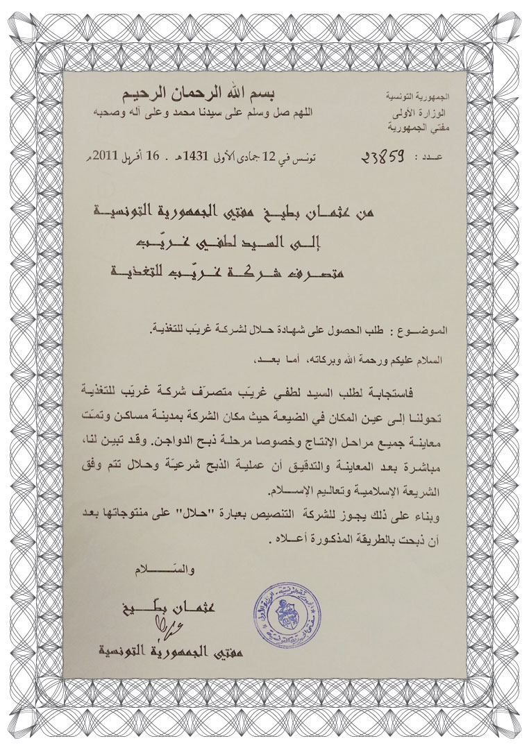 - الشهادة الوطنية حلال